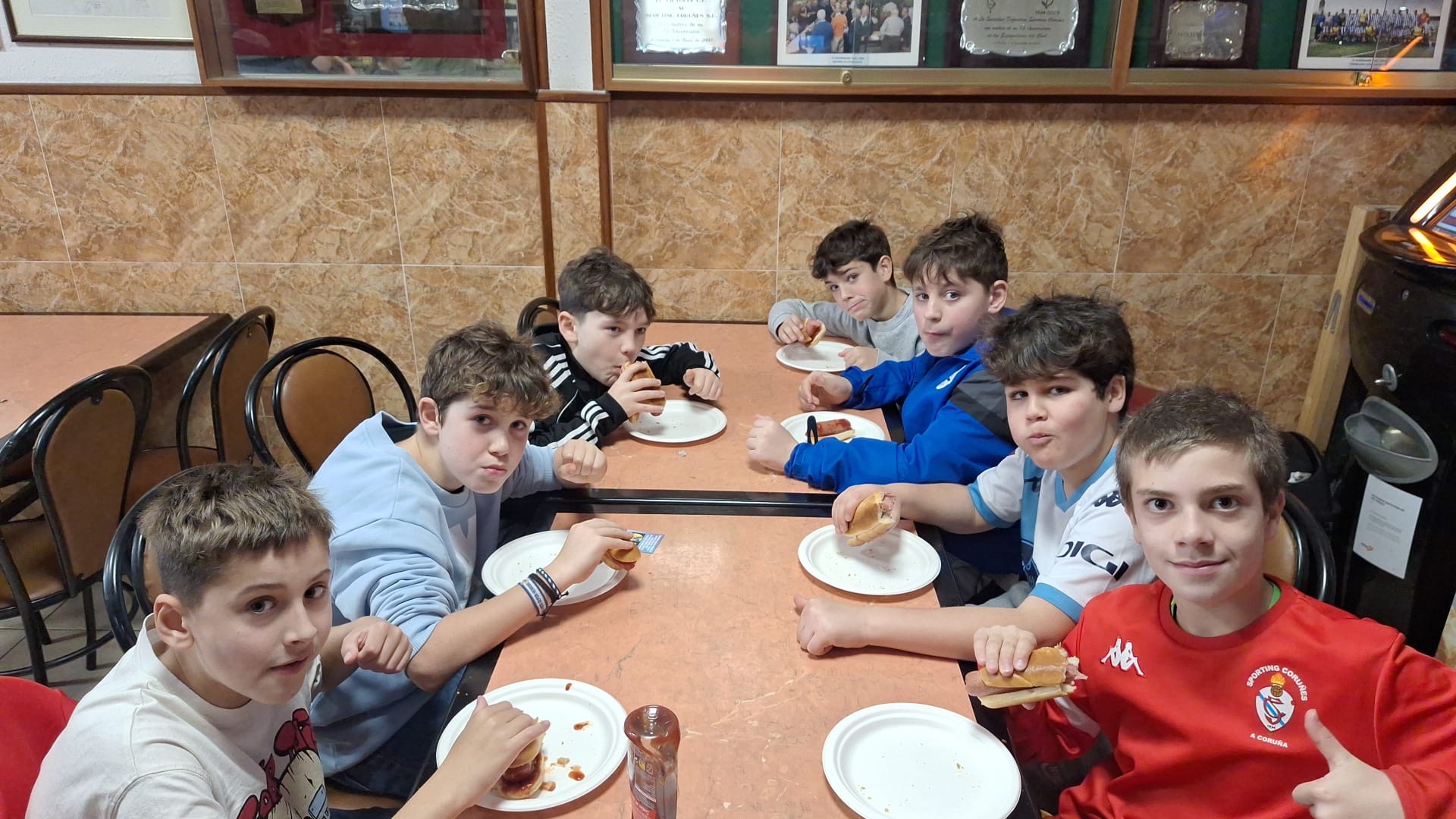 Nuestro Alevín-A reponiendo fuerzas en el Club después de un disputado encuentro contra el Victoria. ⚪️🔵💪